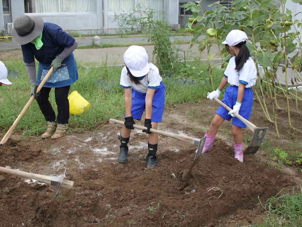 10日(水)に、2年生が、生活科の学習で大根と小松菜を植えました。今回も地域の方を畑の先生としてお招きし、教えていただきました。毎朝、野菜の様子を見ています。収穫が楽しみです。