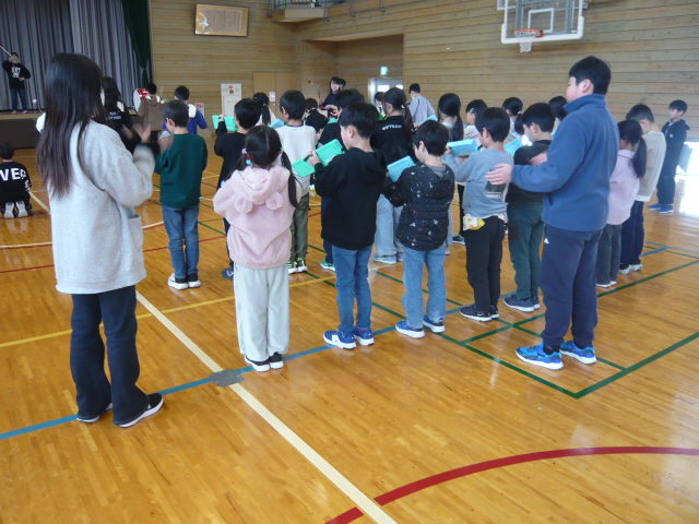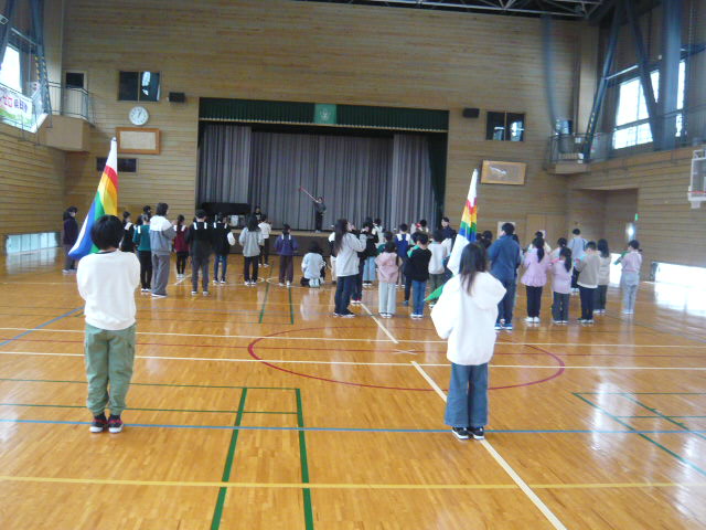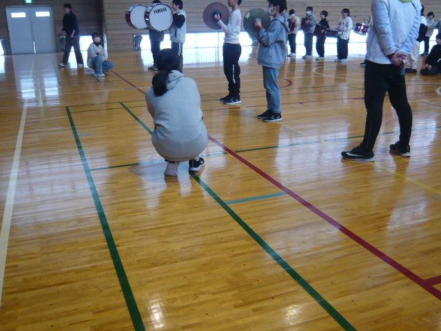 お昼休み、体育館で、初めてマーチングの全体練習を行いました。素人の私には、明日、引継式でもよいと思える出来でした。担当の先生も、「初めてにしては素晴らしい」と褒めていました。これまでの練習の成果ですね。今後は、よりよい演奏を目指して練習をしていきます。今から27日(金))が楽しみです。