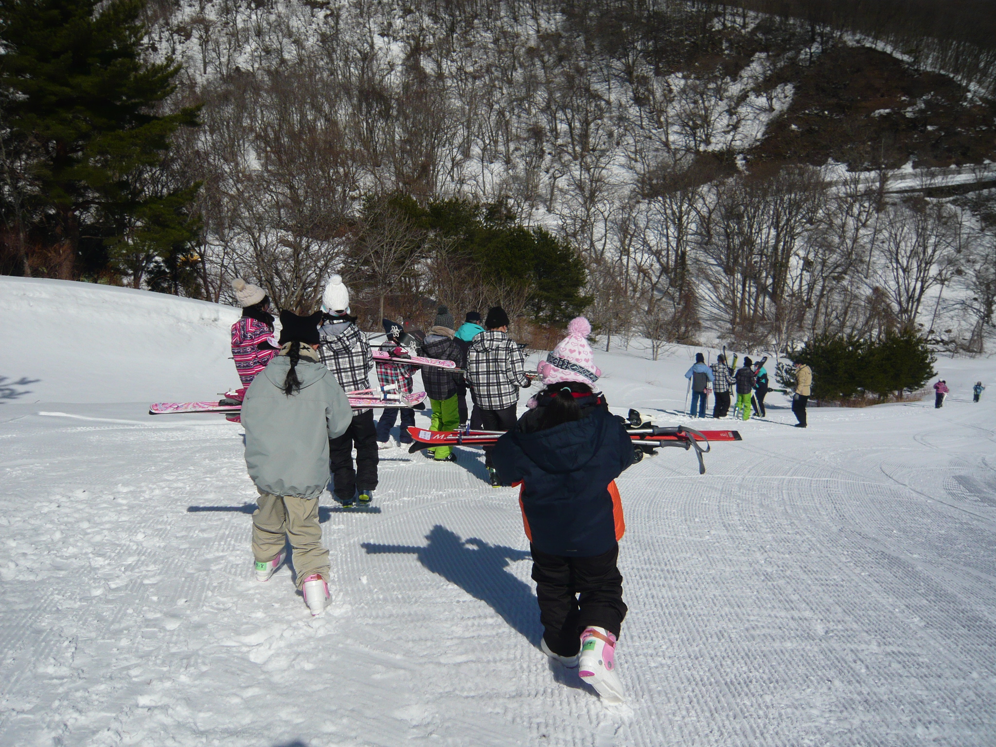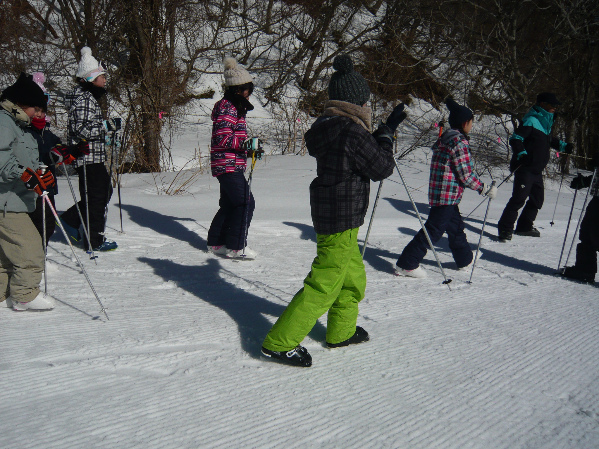 5・6年生が、スキー教室で平スキー場へ行ってきました。快晴のため、運動をすると「暑い! 暑い!」という子どもたちが多かったです。初めてスキーを履く子どももいるため、インストラクターの方から丁寧な指導をしていただきました。帰りには、馬を見ることができました。思い出に残る1日になるといいですね。