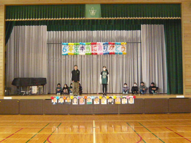 委員会引継ぎ式リハーサル(昼休み)、5・6年生合同卒業式呼びかけ練習(6校時)